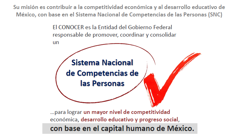 📌El Concejo Nacional de Normalización y Certificación de Competencias Laborales (CONOCER), es una institución del Estado mexicano, sectorizada a la Secretaría de Educación Pública (SEP), que coordina y promueve el Sistema Nacional de Competencias (SNC) para que México cuente con empresarios , trabajadores, docentes, estudiantes y servidores públicos más competentes.