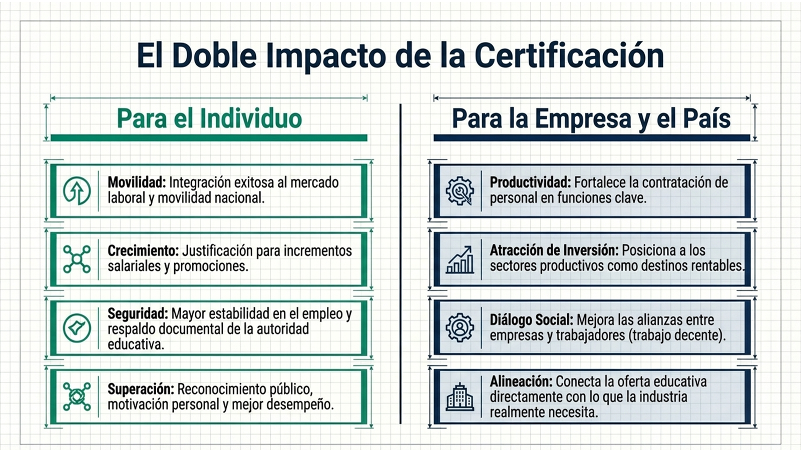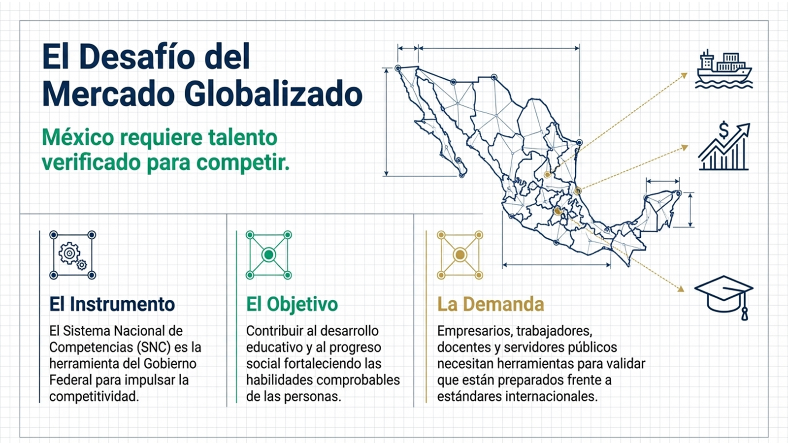 El Sistema Nacional de Competencias impulsa la calidad de la fuerza laboral y empresarial del país, con ello, se fortalece la productividad y capacidad de crecimiento de las empresas.